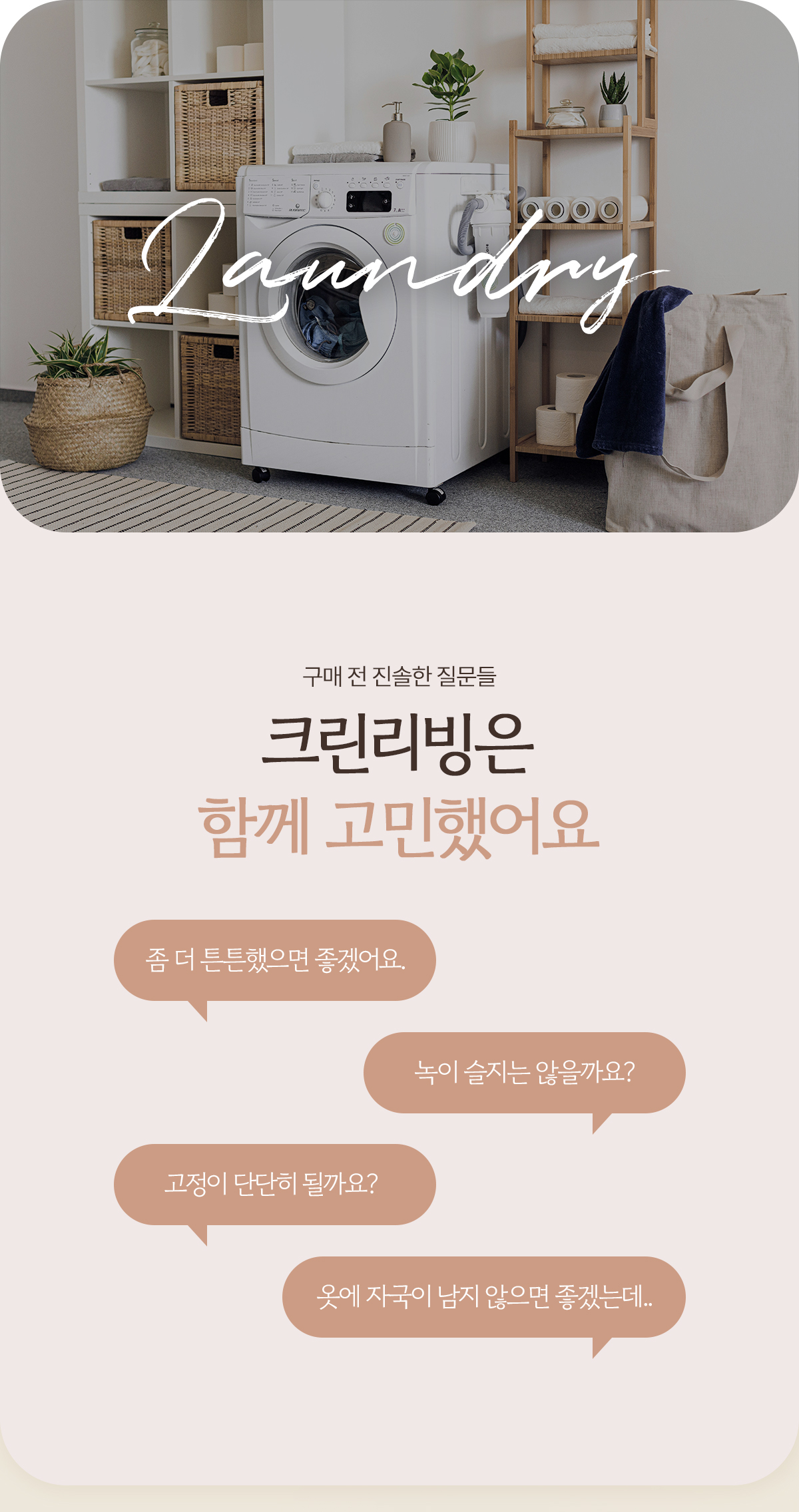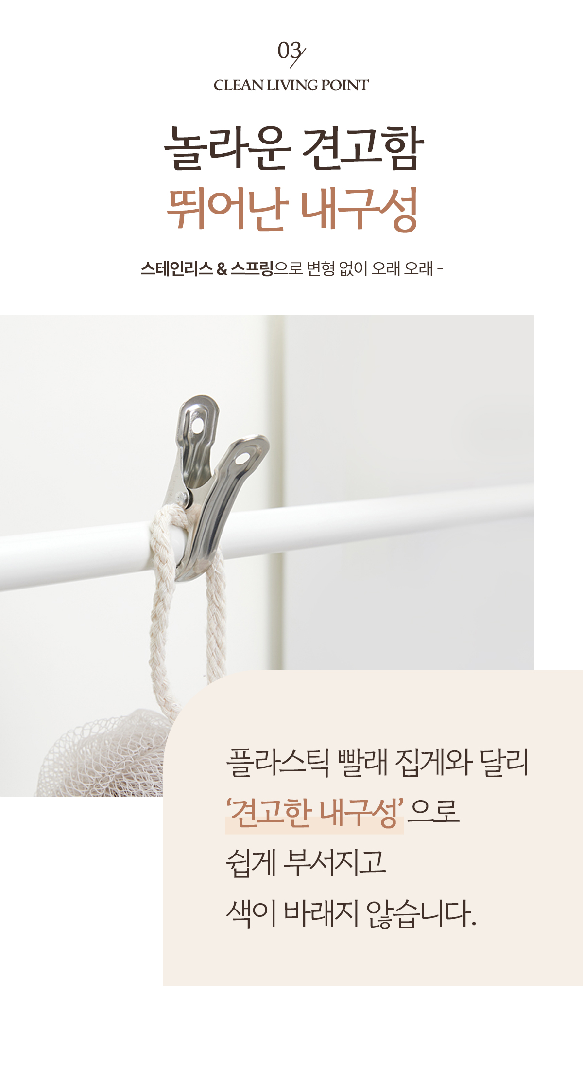크린리빙 스탠 빨래집게elf33322025-07-29T16:01:13+09:00 크린리빙 스탠 빨래집게CATEGORY:Detail pageBRAND IDENTITY생활용품 | 깔끔함 | 감성적기획 기여도100%MAIN COLOR● #cc9c84WORKING DAY & COMPANY2025. 02| 크린리빙디자인 기여도100%
